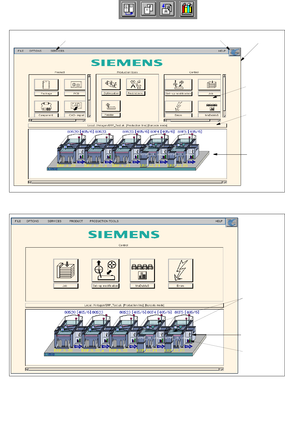 required for the production (control). The other tools can be activated via the menu options of the