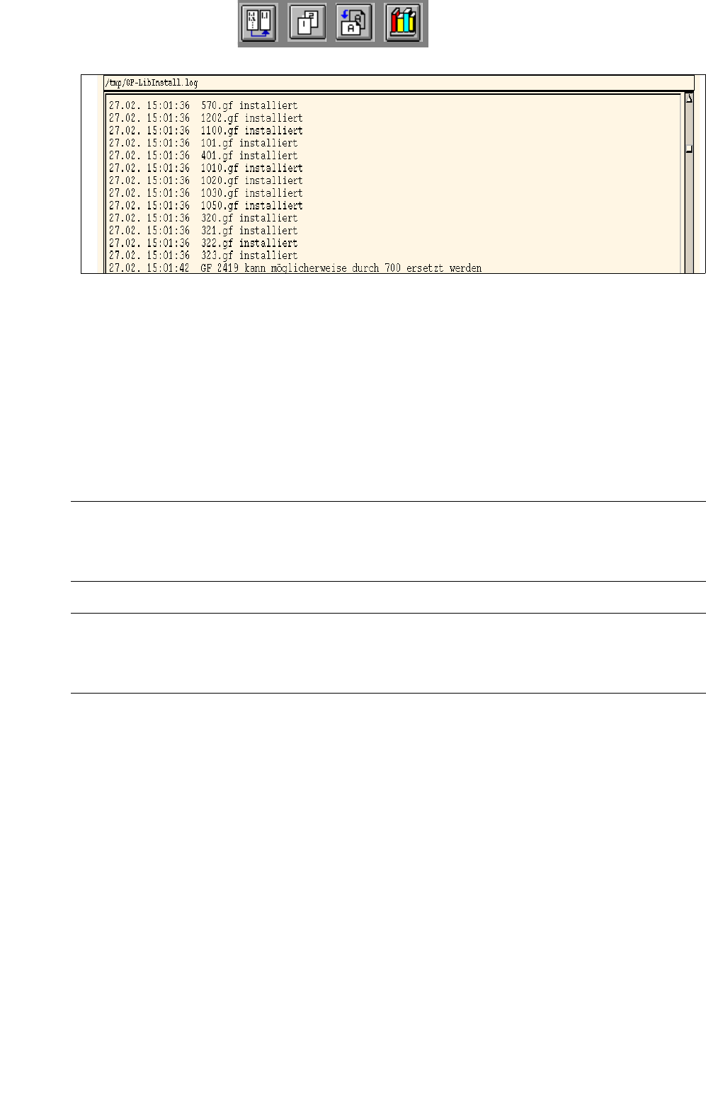 The File Display main window opens. The contents of the "GF_LibInstall.log" log file are dis-