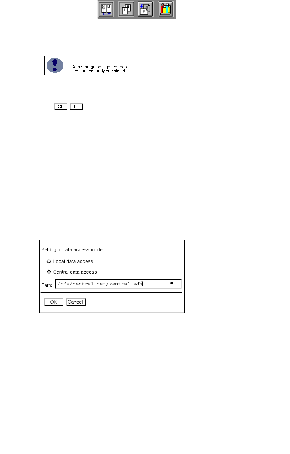 User Manual Line Computer UNIX 4 Data Management Software Version 502.xx 10/2000 Issue 4.2 Data Storage 117 I t I I The sw itch-ove r procedur e is sta rted and sub sequently verified . When the switch-over pro cedure h …