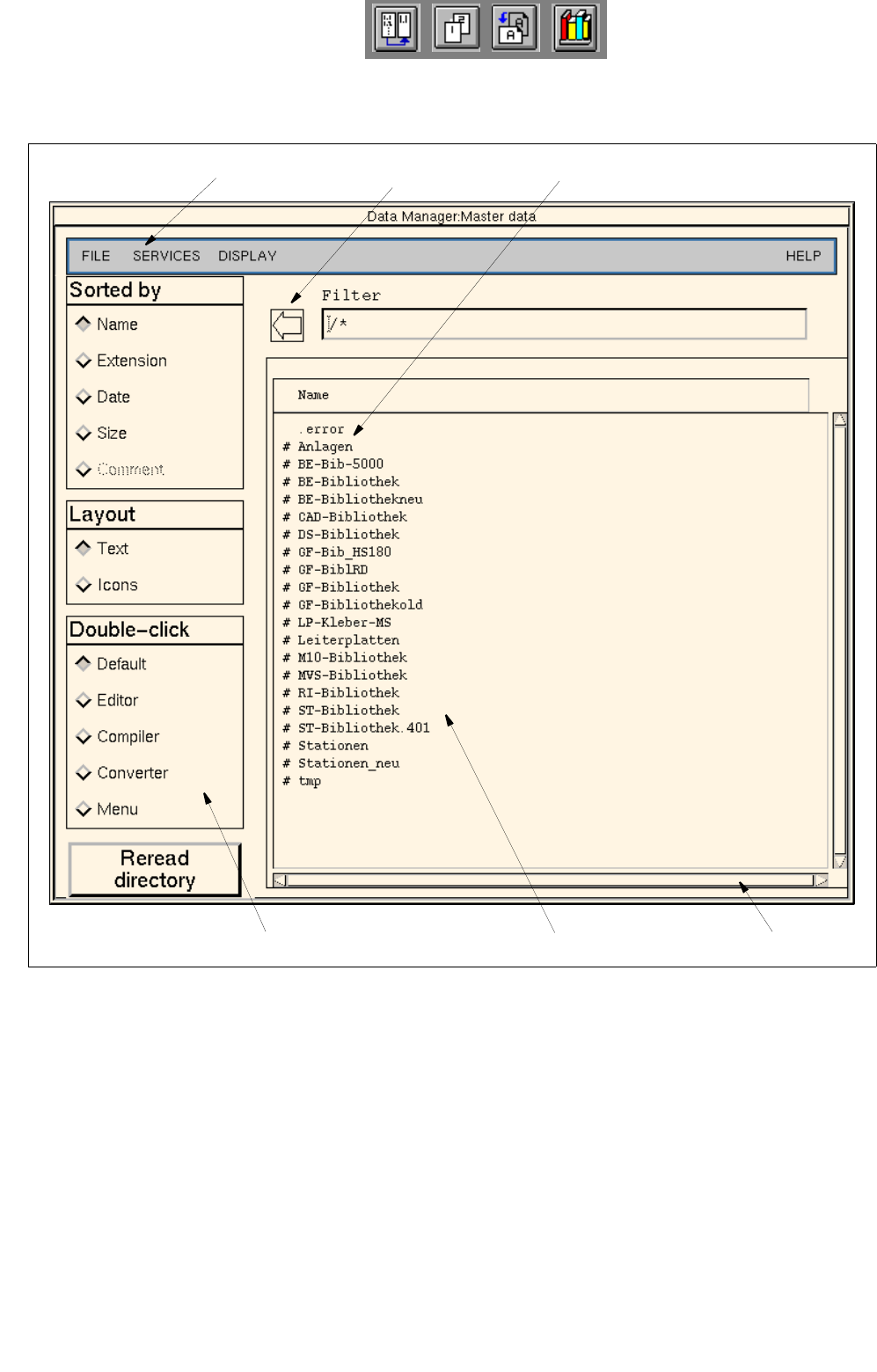 4 Data Management Us er Manual Line Computer UNIX 4.3 User Interfac e of the Data Manager Software Version 5 02.xx 10 /2000 Issue 124 I t I I 4.3.4 Main Window of a Data Partner Fig. 4.3.2 Main Window of a Data Partner (…