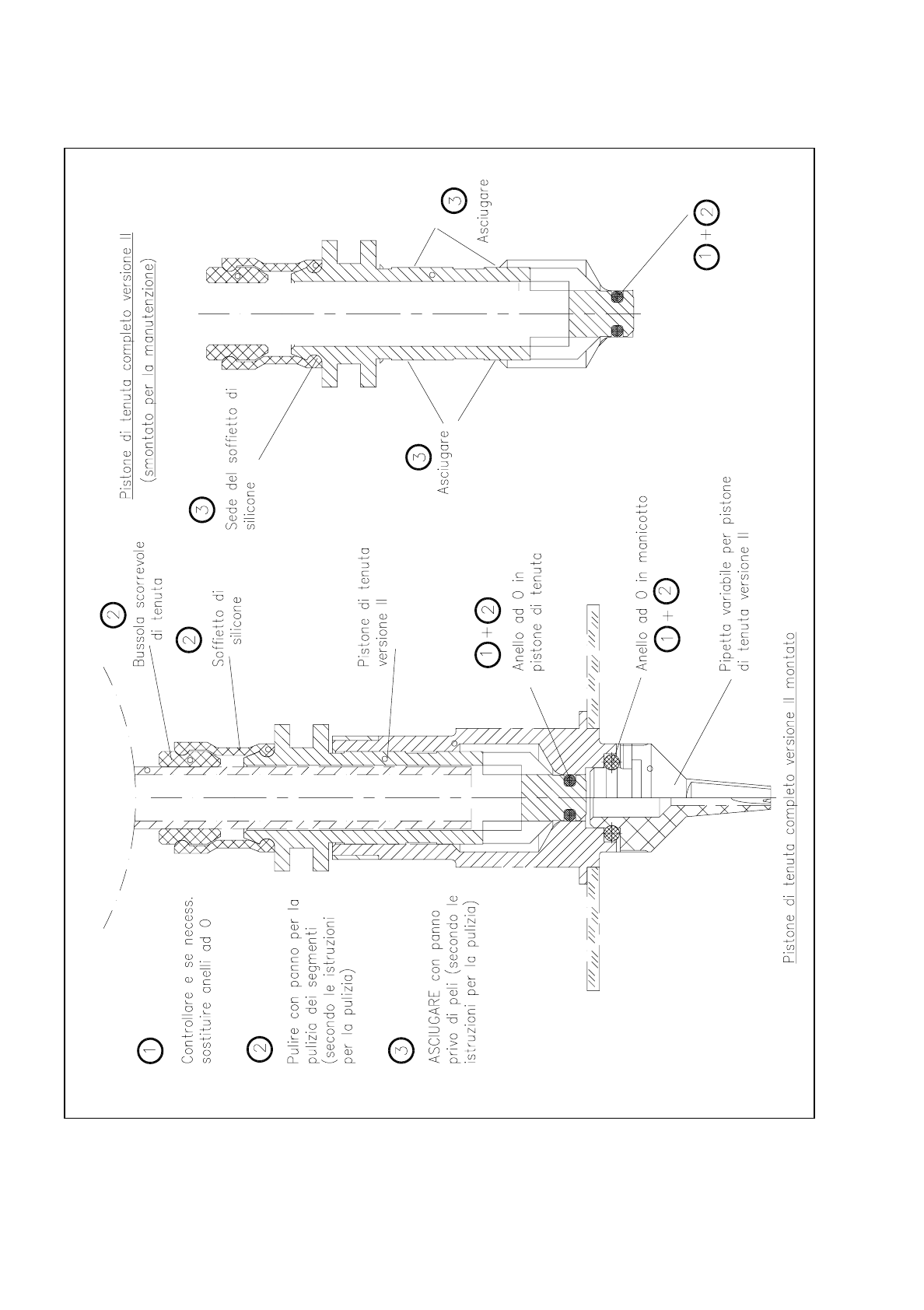 Fig. 9.5.15 Smontaggio/montaggio e manutenzione del "Pistone di tenuta completo", versione II, (disegnato in direzione di