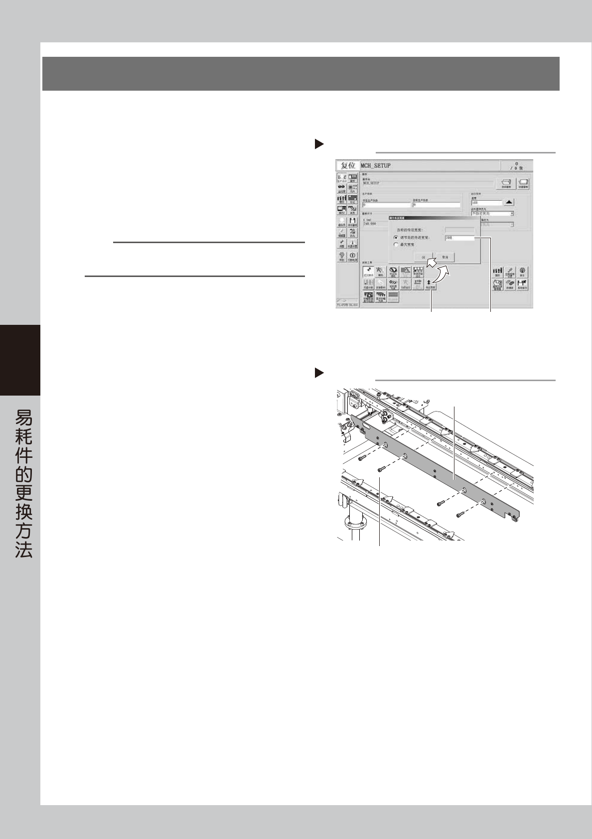 4-9 4 3.3 清洁用排气电磁阀的更换 1 切断贴片机的电源与供气。 1. 退出软件程序,关闭贴片机的电源。 2. 将贴片机左下盖板内的 [ 供气 / 排气 ] 开关向右 旋转,切断供气。 2 使贴装头部移到贴片机的正面侧。 打开贴片机的正面机盖,用移动把手将贴装头部移 到贴片机正面一侧。 3 从贴装头部拆卸电磁阀单元。 按照与本章前述 “3.2 电磁阀的更换” 中 Step3 〜 Step7 的相同方法拆出贴装头部的电磁阀单元。 …