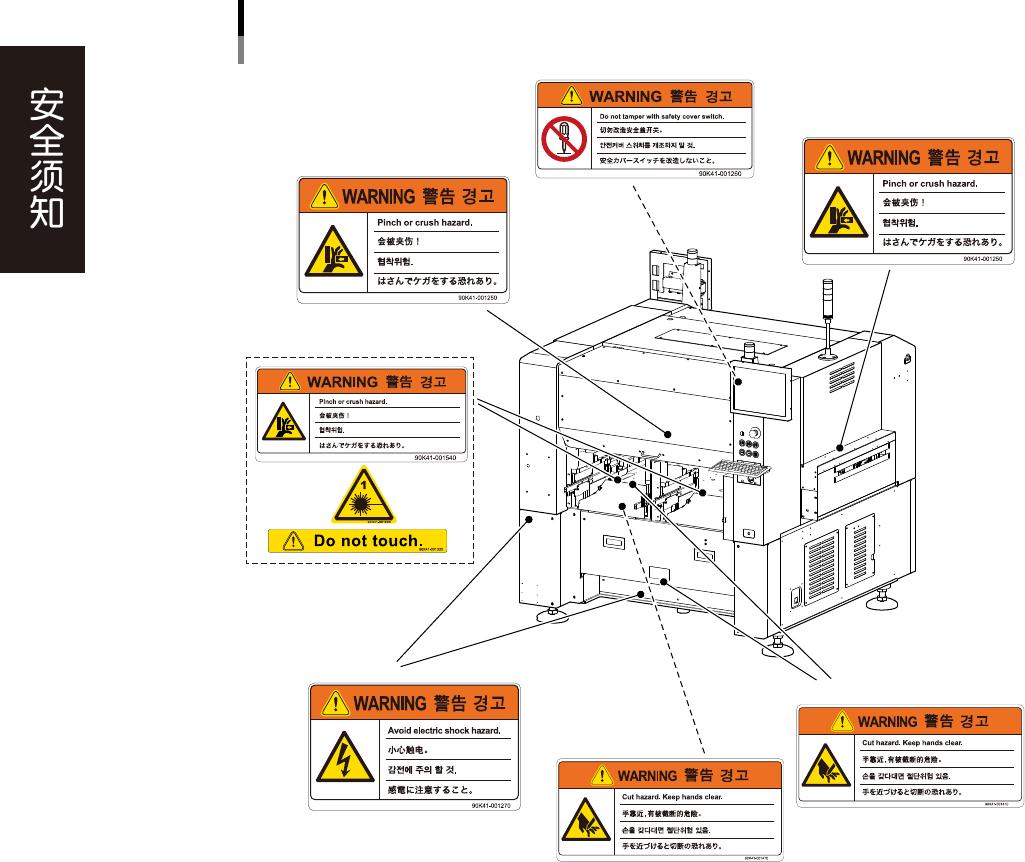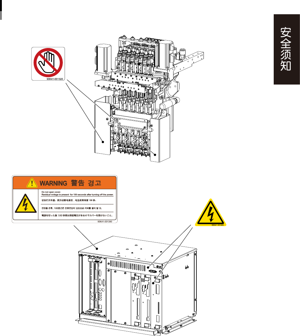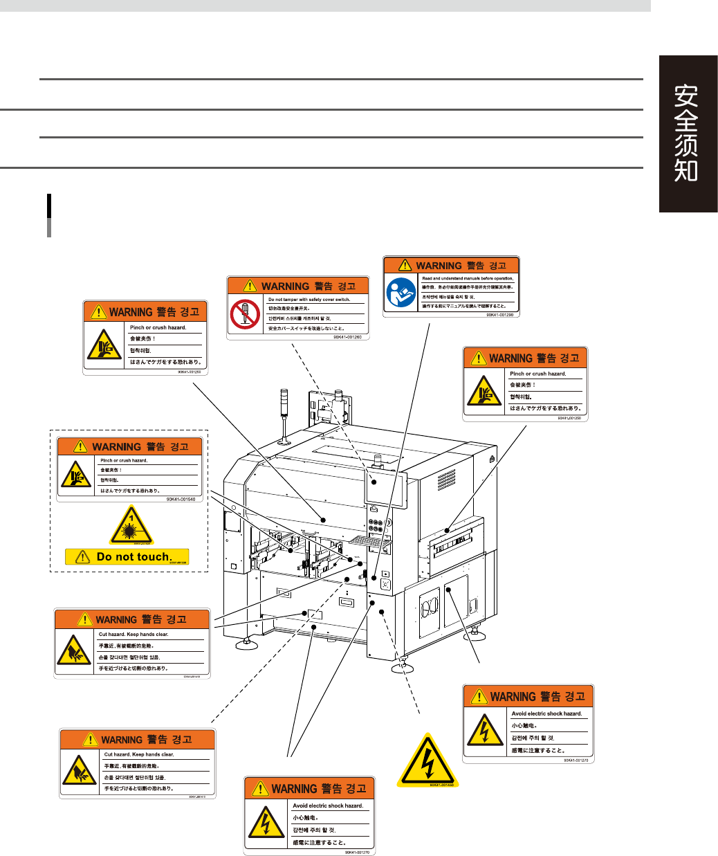 xxviii ■ 标贴张贴位置 警告标贴 背面 ■ 机盖内部 ■ 机盖 ■ 下部盖板 ■ 传送轨开口部 ■ 送料器安装部 ■ 切带机部 ■ 切带机内部 95202-L1-10