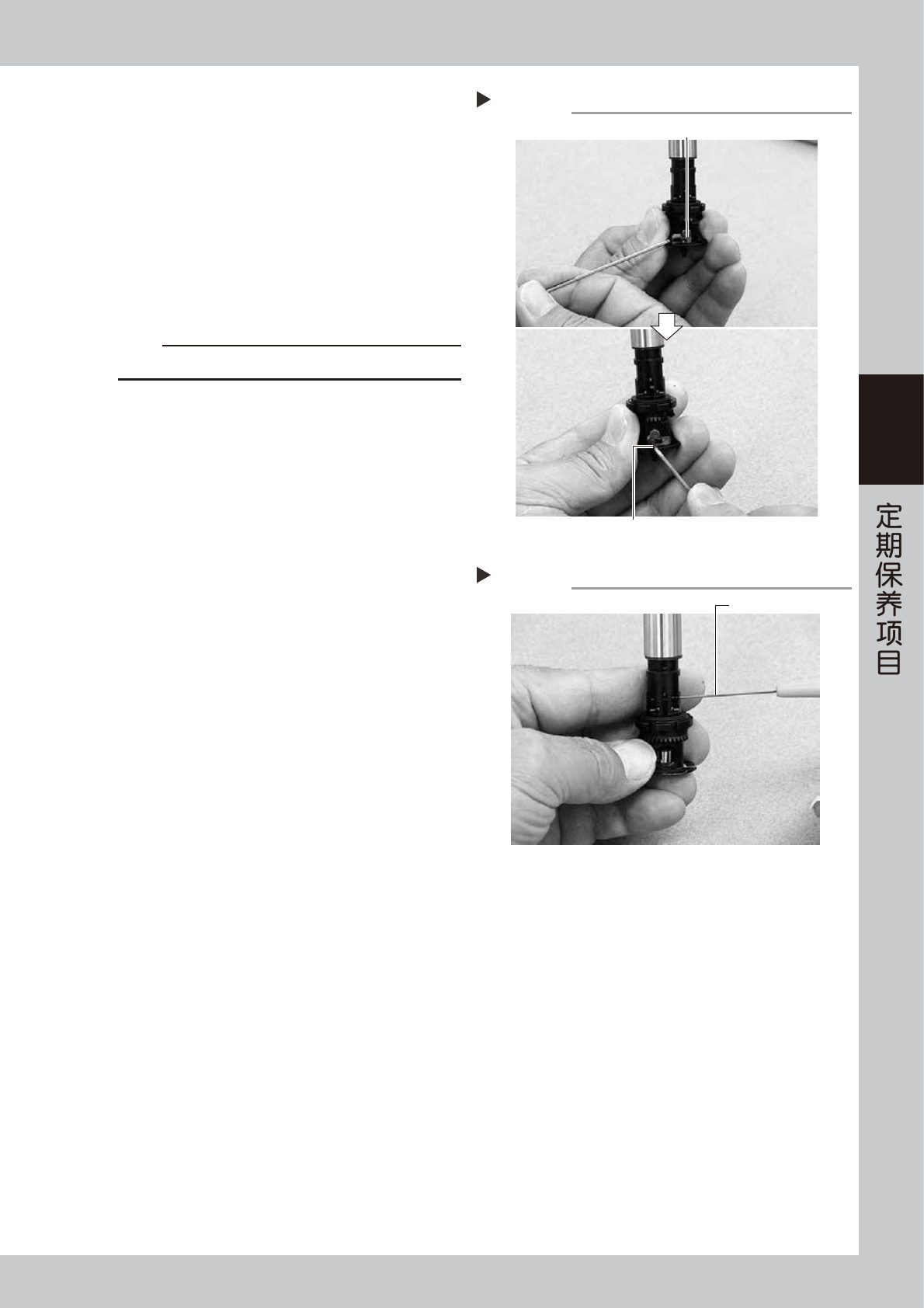 3. 在按下凸轮的状态下转动大伞齿轮,检查小伞