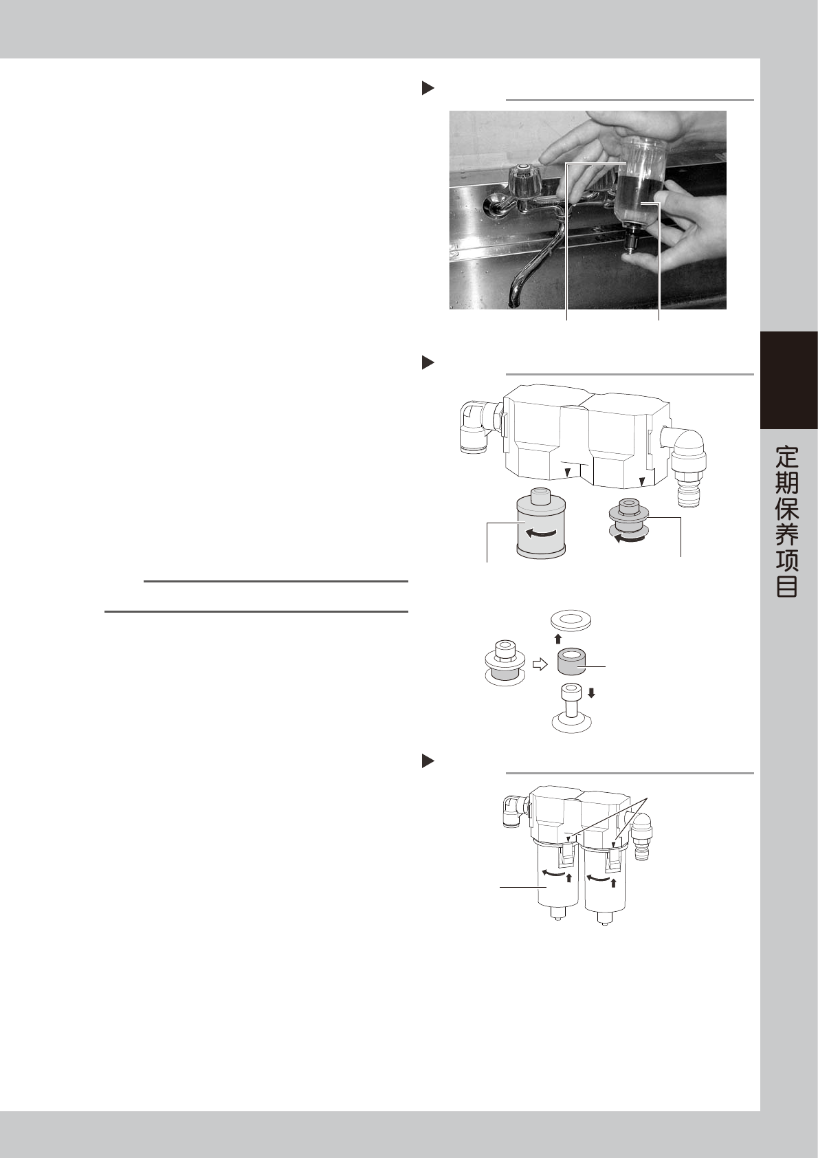 1. 将过滤杯的按钮对准右图中三角标记的位置之