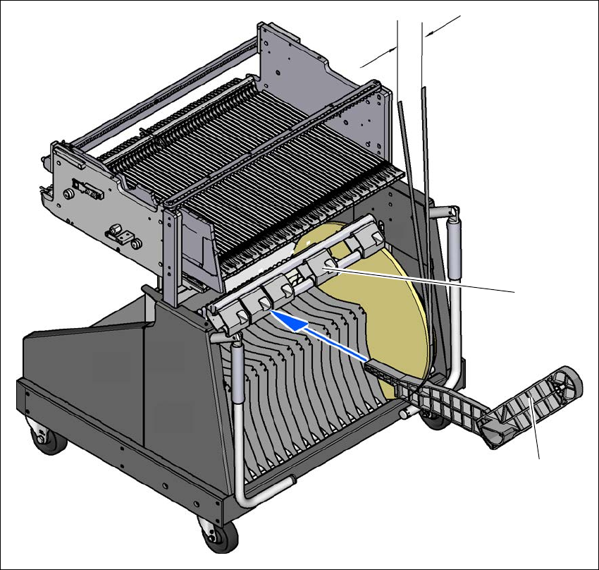 轨曲线上滑动,直到停止杆为止。停止杆的对中孔可以固定 X 供料器组件的前对中销。与此同