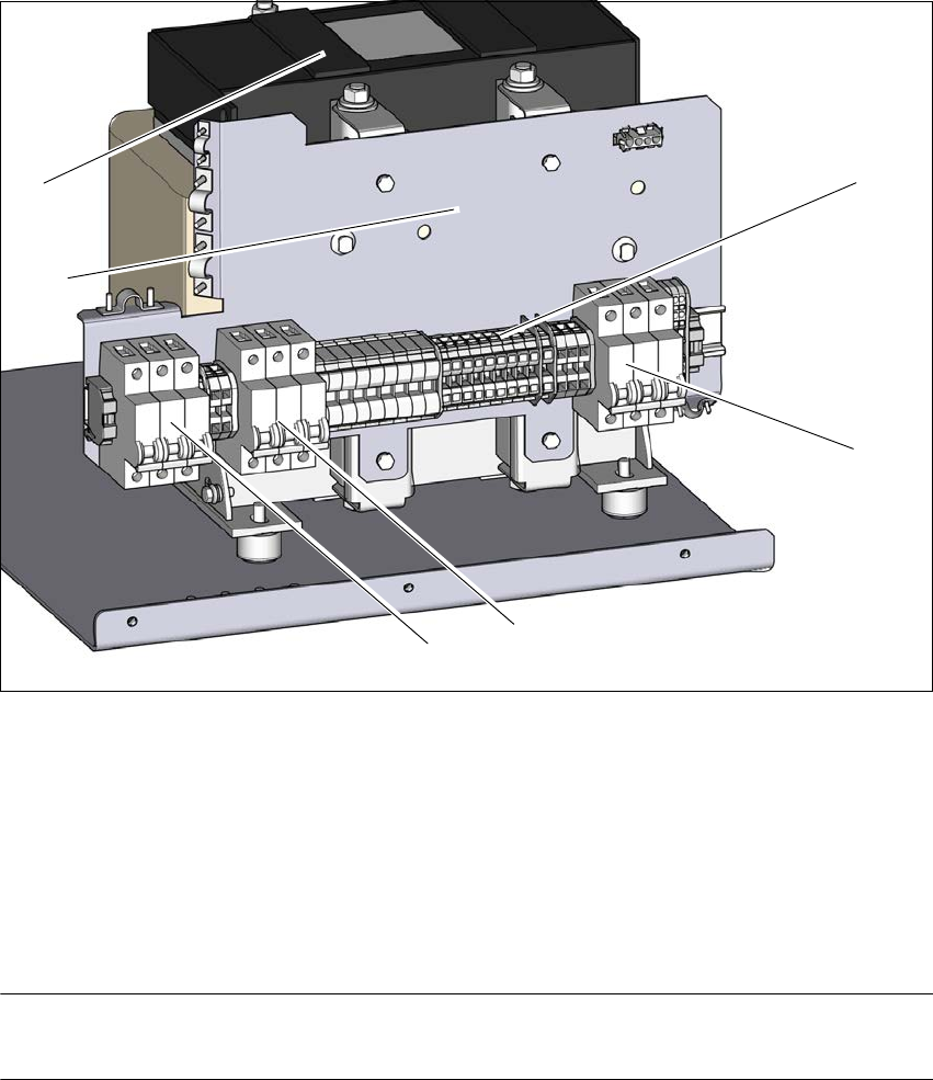 Æ 检查终端面板 (1),确保三相变压器的初级端 (2 中的电缆)相应的电压连接正确。