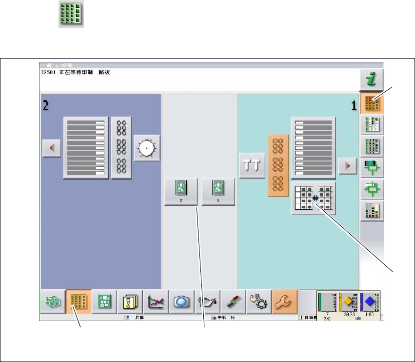 用户手册 SIPLACE SX1/SX2/DX1/DX2 5 使用贴片机 SC.705.xx 以上软件版本 2011 年 10 月 中文版 5.5 用户界面 249 将打开下面的视图: 5 图 5.5 - 4 "WPC" (所显示的 SIPLACE SX 示例)视图中的用户界面 图例 (1) 垂直工具栏 "WPC" (2) " 上一级 " 按钮,返 回上一个视图 (此处: &q…
