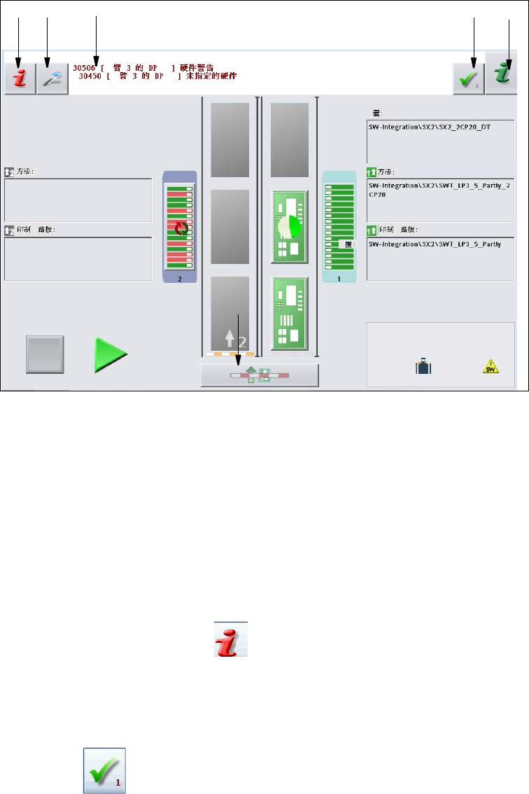 工具栏中以红色高亮显示的按钮表示,需要操作员采取行动。