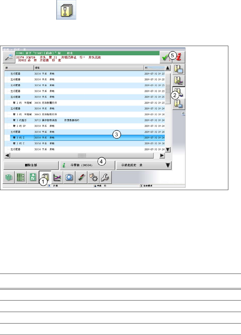 Æ 单击工具栏中的 按钮 (1)。将列出所有出现的警报。