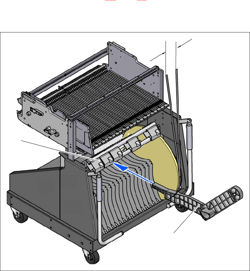 需将支座插入固定器 (2) ,并推至偏移小于最大允许值 (60 mm)。料车共带有 5 个固定器。料