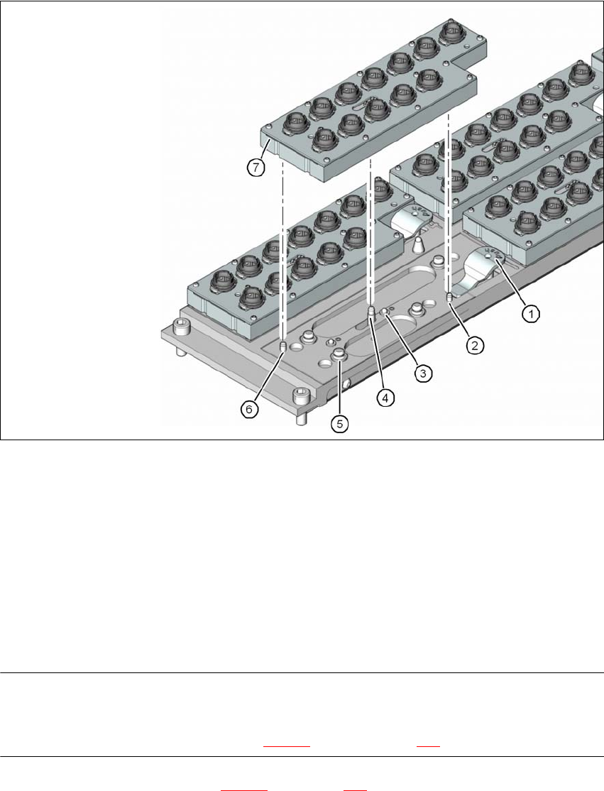 - 插入前要对齐吸嘴盘,让对中销 (图 6.1 - 11 中的 2 和 6,第 306 页)滑入对中孔和槽内。