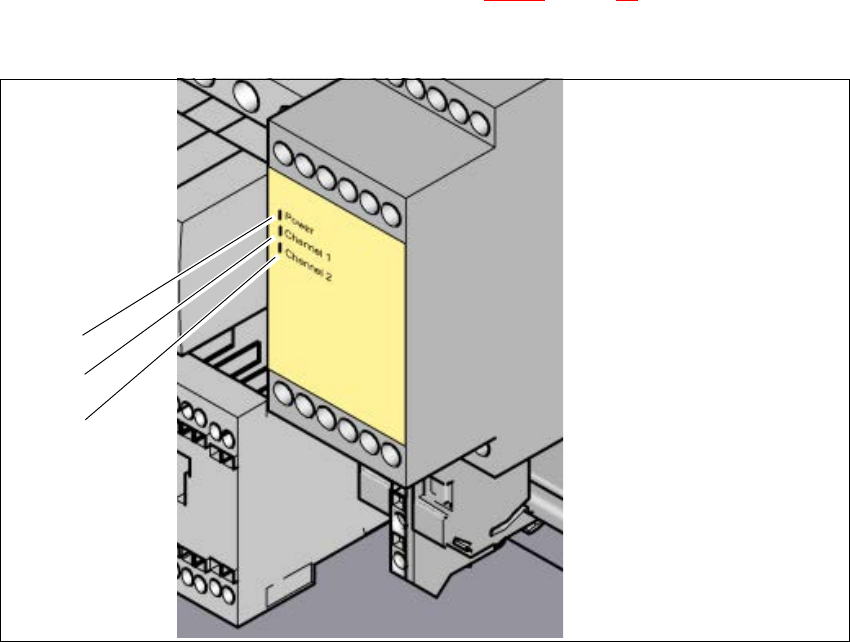 组合继电器的前侧拥有三个绿色 LED 用于操作显示 (见图 2.7 - 7
