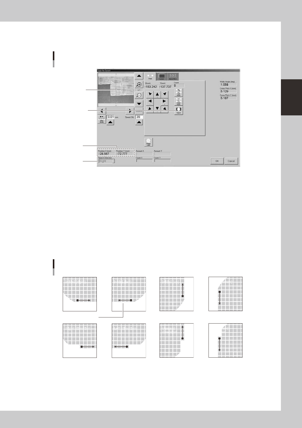 dicing frame). After the current position is correctly taught, the corresponding coordinates are