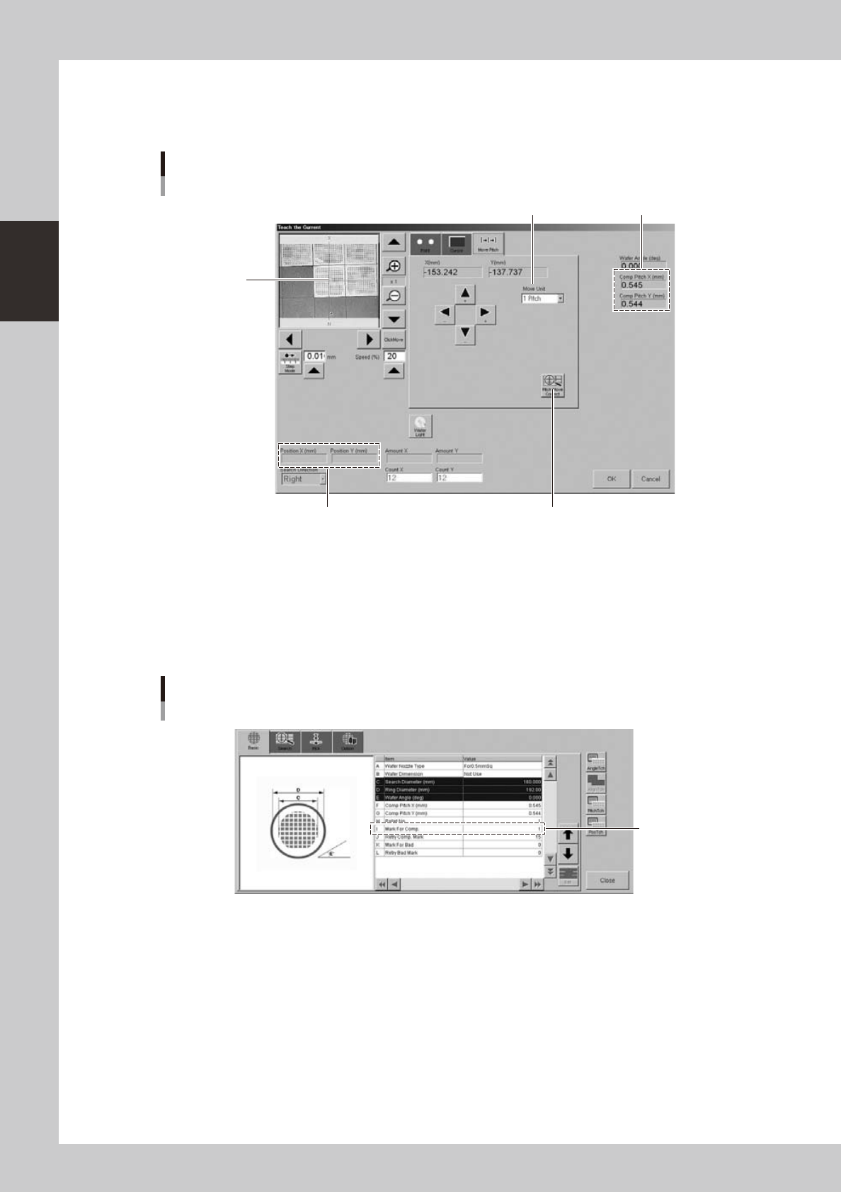 of the screen. To enable pitch movement correction, a mark number must be set in the "I: Mark For Comp." parameter on
