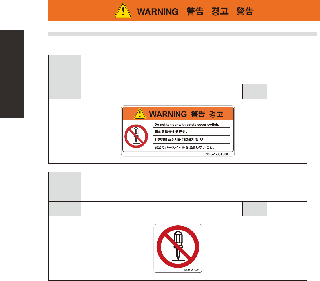 peripheral equipment. Check that the information on each warning label is clearly legible and comply with