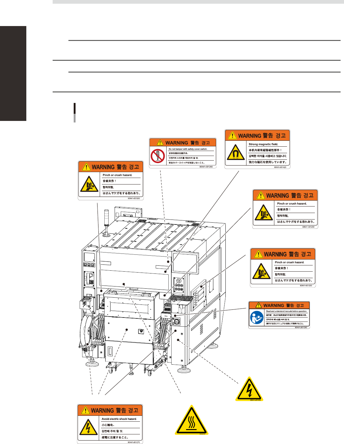 xxiii Safety instructions n Label positions W arning labels Rear side N Open/close cover N Open/close cover inner side N T ransparent cover inner side N Conveyor opening 93203-H0-10