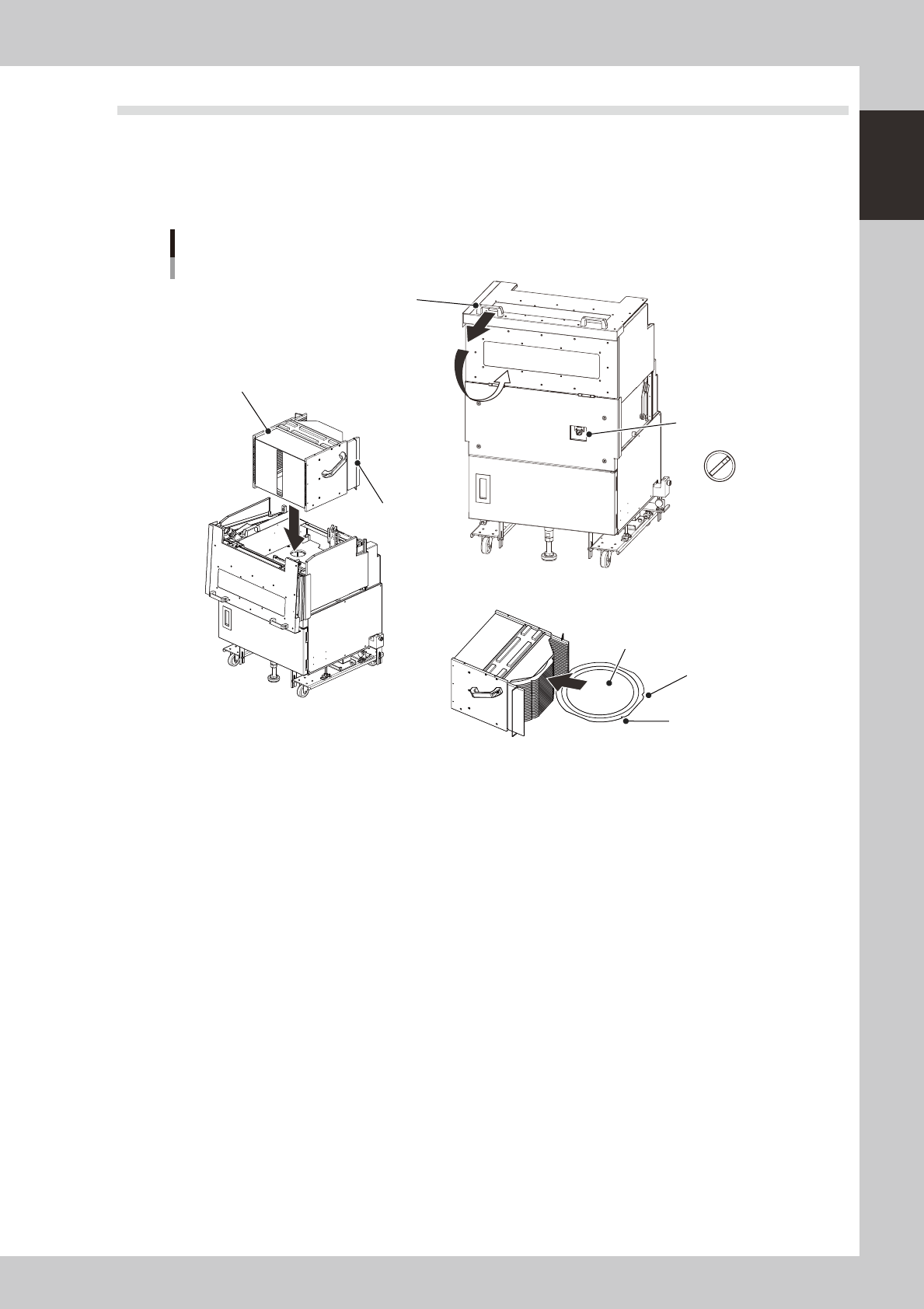 Press the emergency stop button and open the safety cover on this machine. Then pull the cover open/