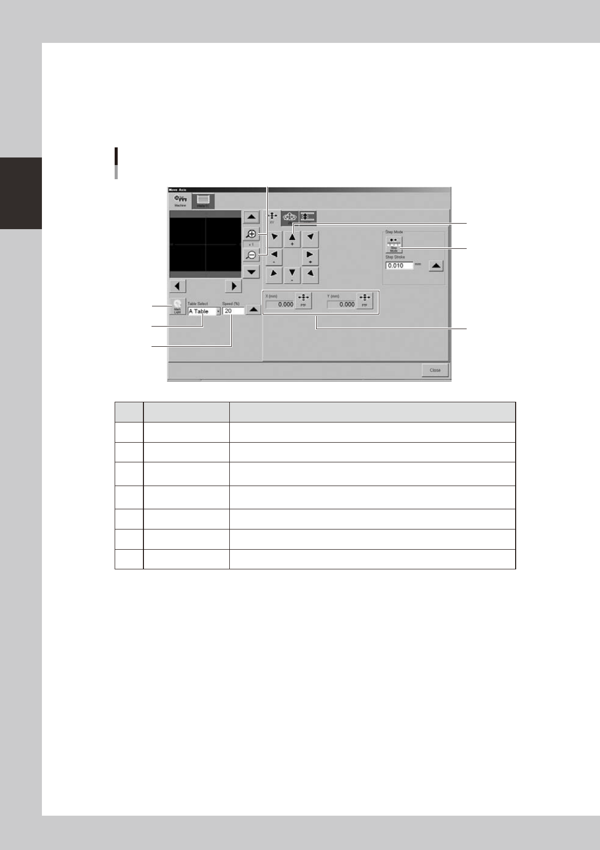 5 Arrow Use these buttons to move the selected axis in the desired direction.