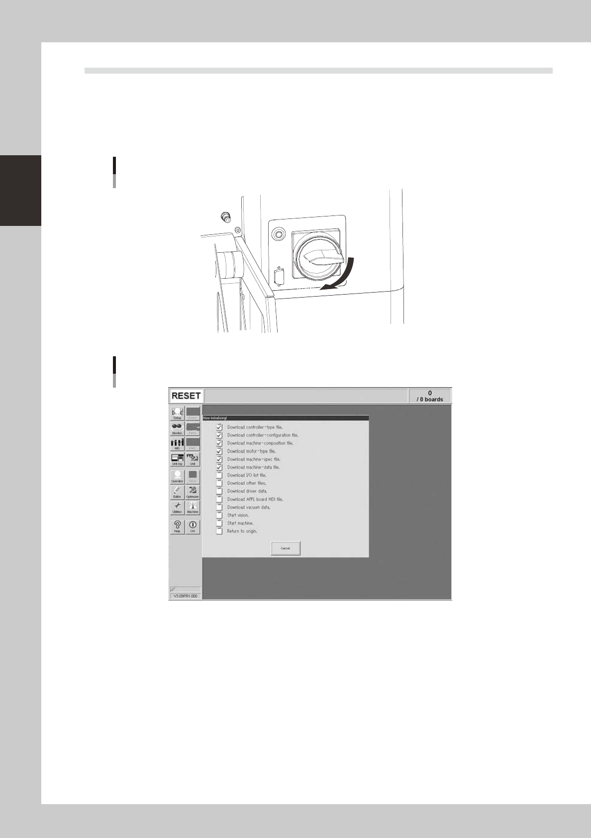 system has started, the Initialization screen appears and the program necessary for machine operation