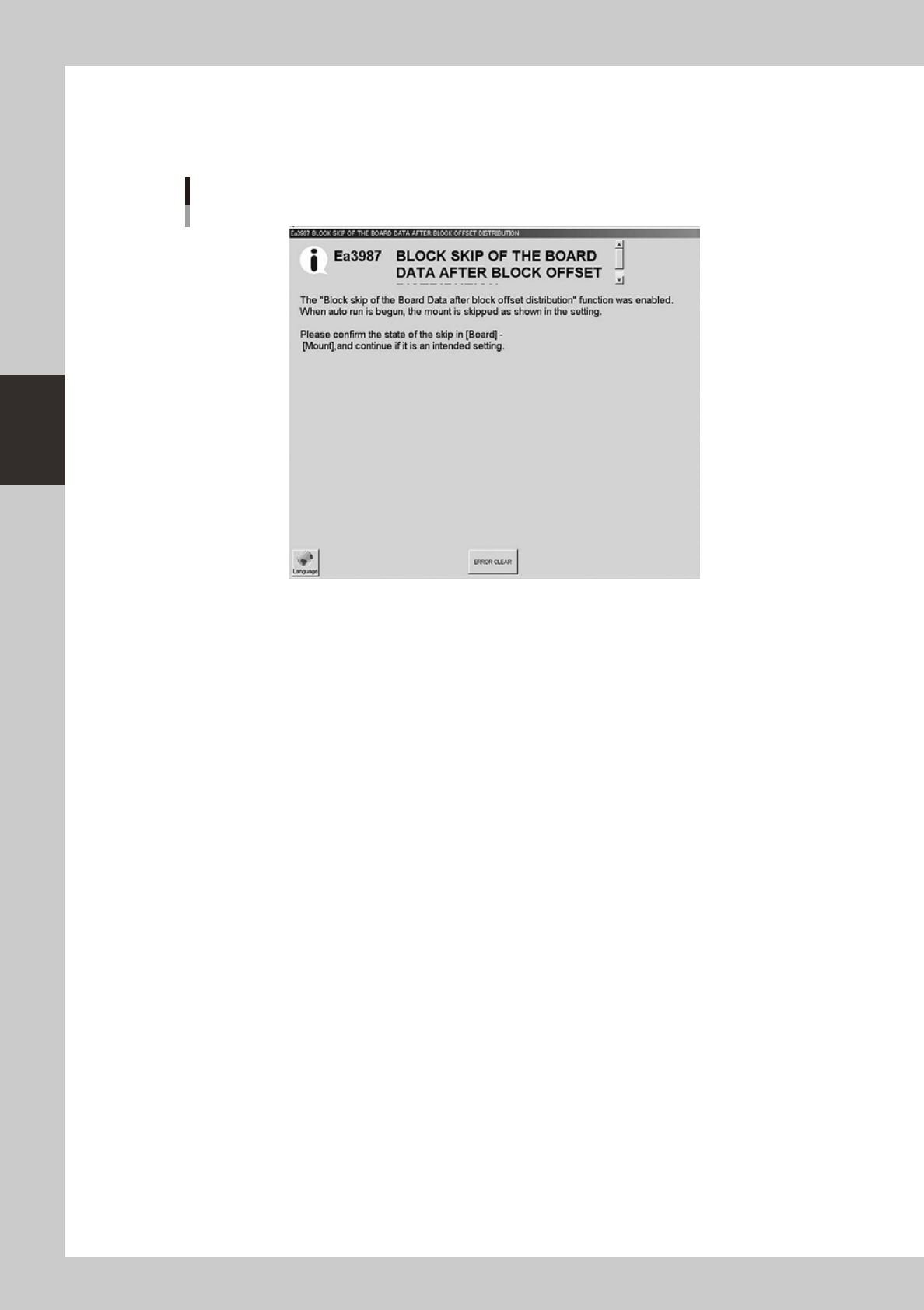 When board data with block distribution performed is loaded, the [Block Skip] button on the Setup screen