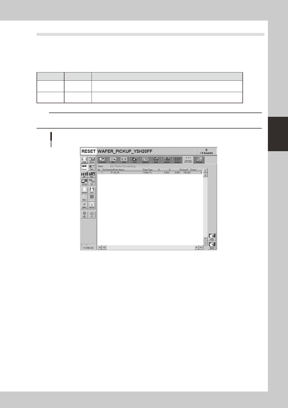 3-24 3 Starting and ending pr oduction 3.10 Pick Rate W ar ning T his screen appears when the pickup rate w arning function is used. T his screen allows chec king for a drop in the component pickup r ate on each componen…
