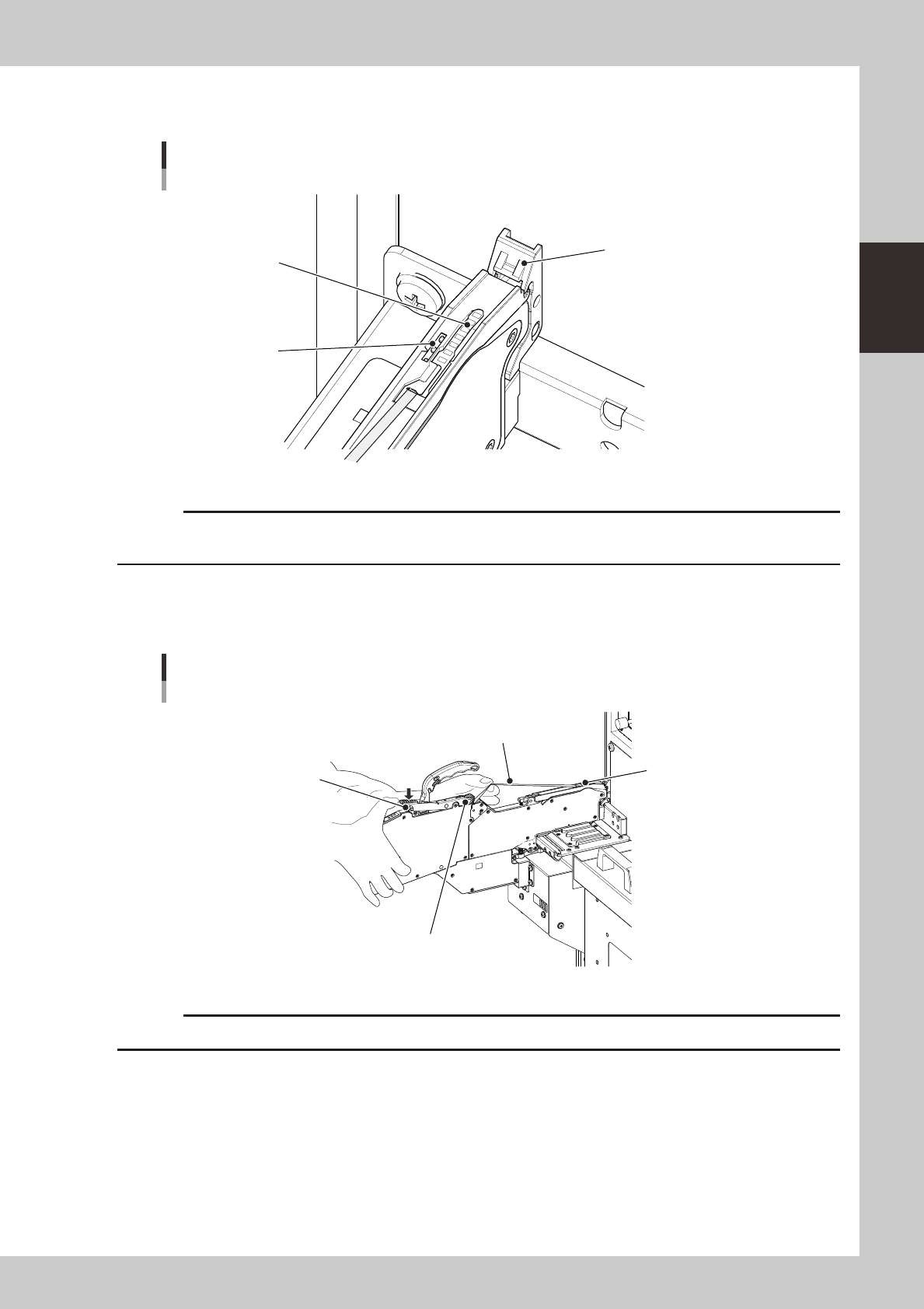 2-27 2 asic operation 7 Clamp the tape guide assembly . Set the carrier tape so it engages with the teet h on the sprocket. Clamping the tape guide assembly Sprocket teeth T ape guide front lever Carrier tape 23209-H0-…