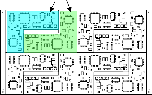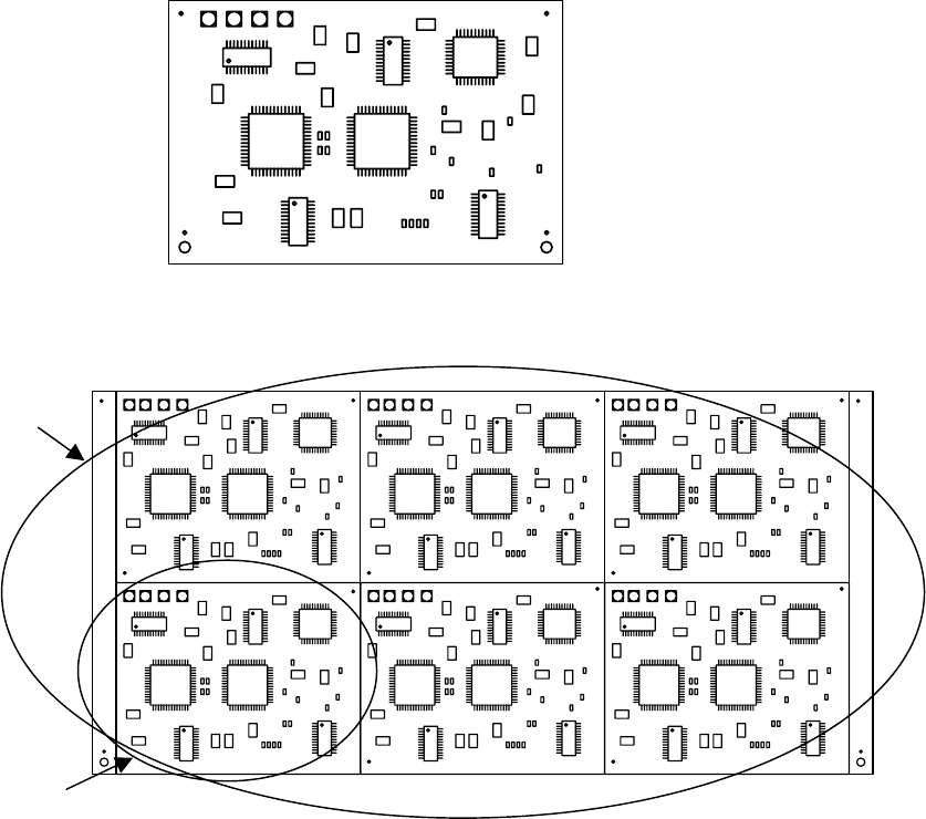◆ 矩阵电路板: 如图所示,是指在一块基板上,存在多个电路,所有电路的角度相同,