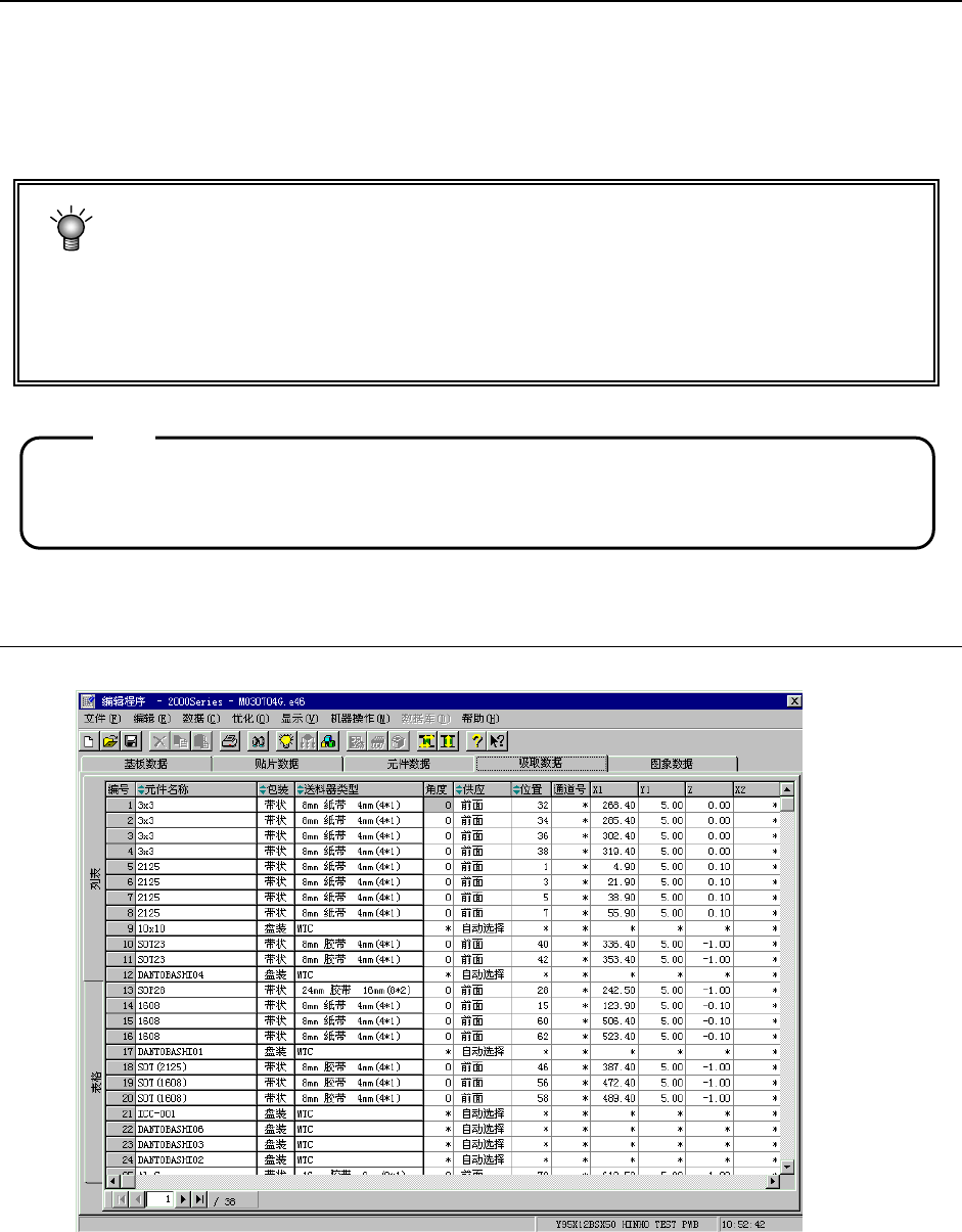 数据中的吸取坐标。因此,如果读入其他机种的生产程序时,务必再确认吸取坐标。
