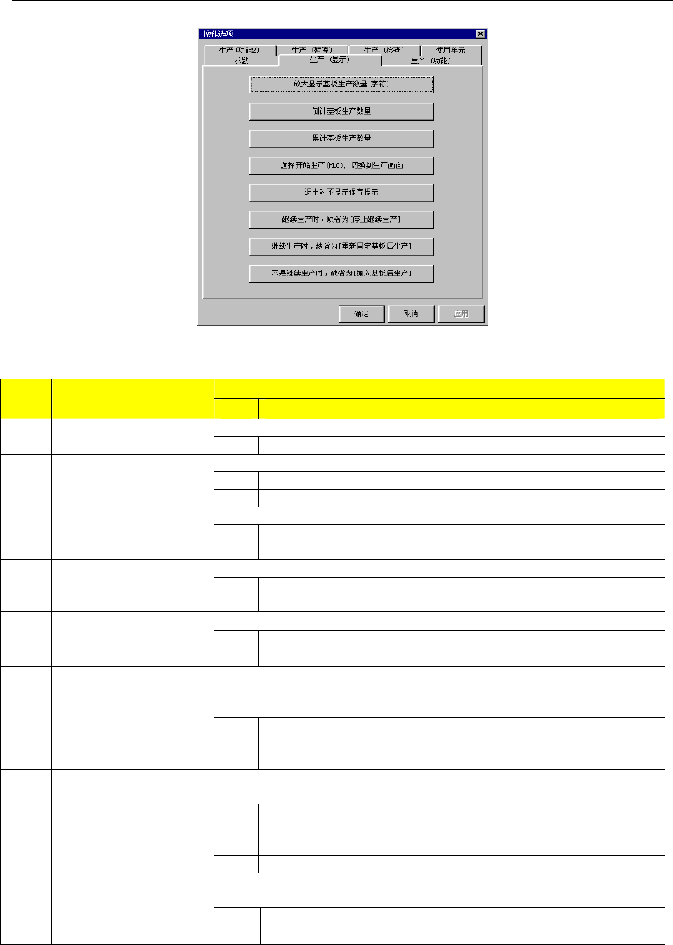 图5- 6生产时的显示选项