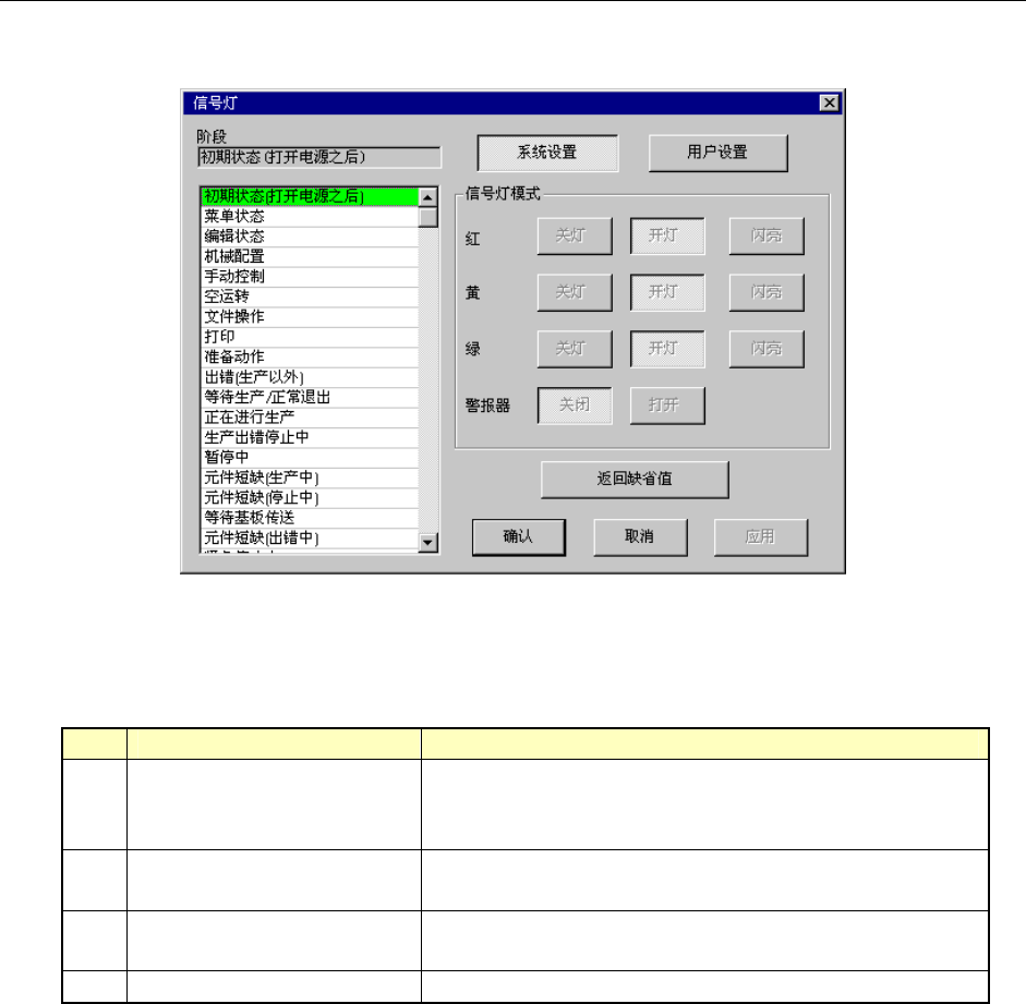 根据画面左侧的一览表,选择要设置的动作(步骤),指定信号灯样式(选择后,按钮变为凹状