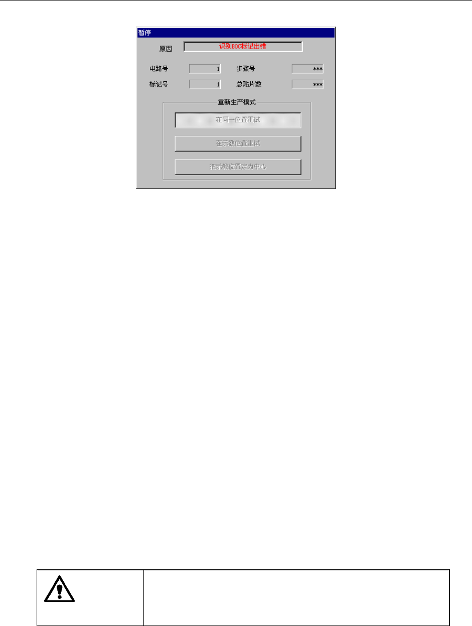 在BOC标记、区域坐标点的识别中发生识别错误,则显示如下的画面,并进入暂停状态。