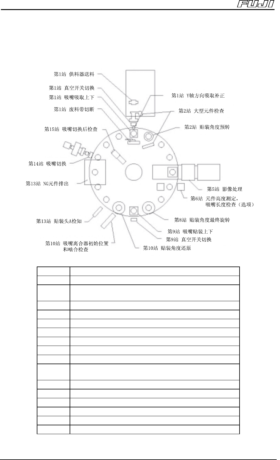 旋转主轴在驱动部位上设有16个贴装头,在各个工作站上进行以下的动作。