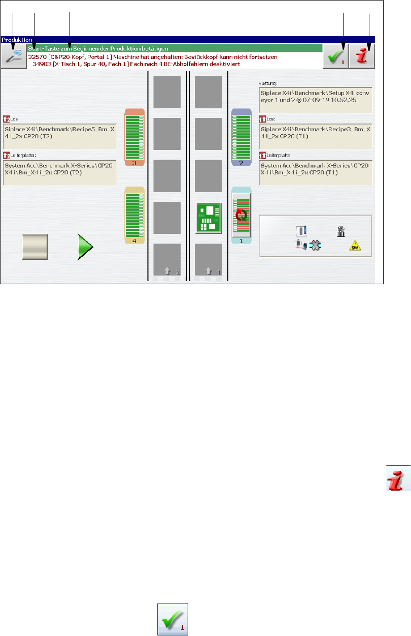 Abb. 5.6 - 1 Ansicht "Produktion" mit Alarmmeldung (am Beispiel der SIPLACEX4i)