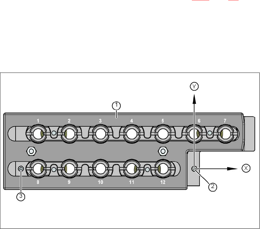 Abb. 6.1 - 8 Pipettenmagazin - Garagennummerierung, Marken zur Bestimmung der Position und der Winkellage