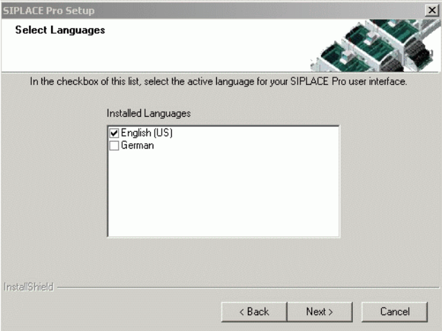 Select the check box of the language with which the installed applications like SIPLACE Pro