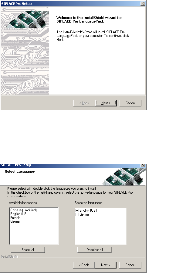 Fig. 5.1 - 2 InstallShield Wizard dialog box for SIPLACE Pro Language Pack