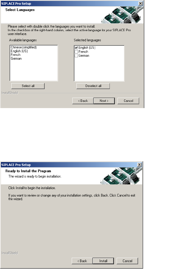 Installation Manual 5 Installation of SIPLACE Pro Language Pack