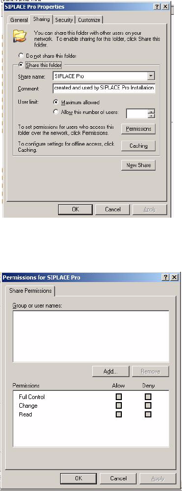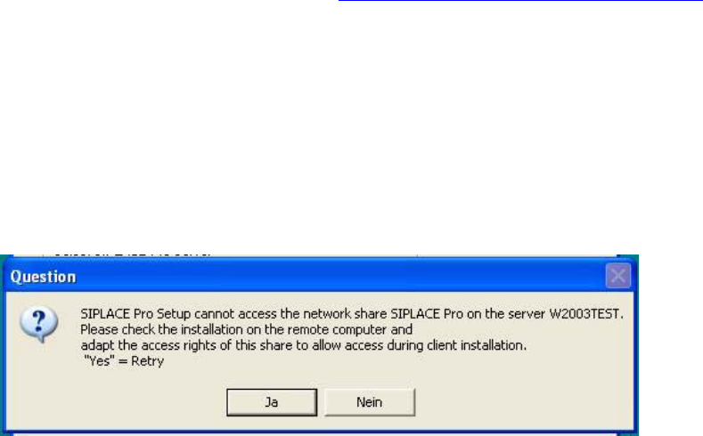 7.1.9 Access problems of SIPLACE Pro share after client installation