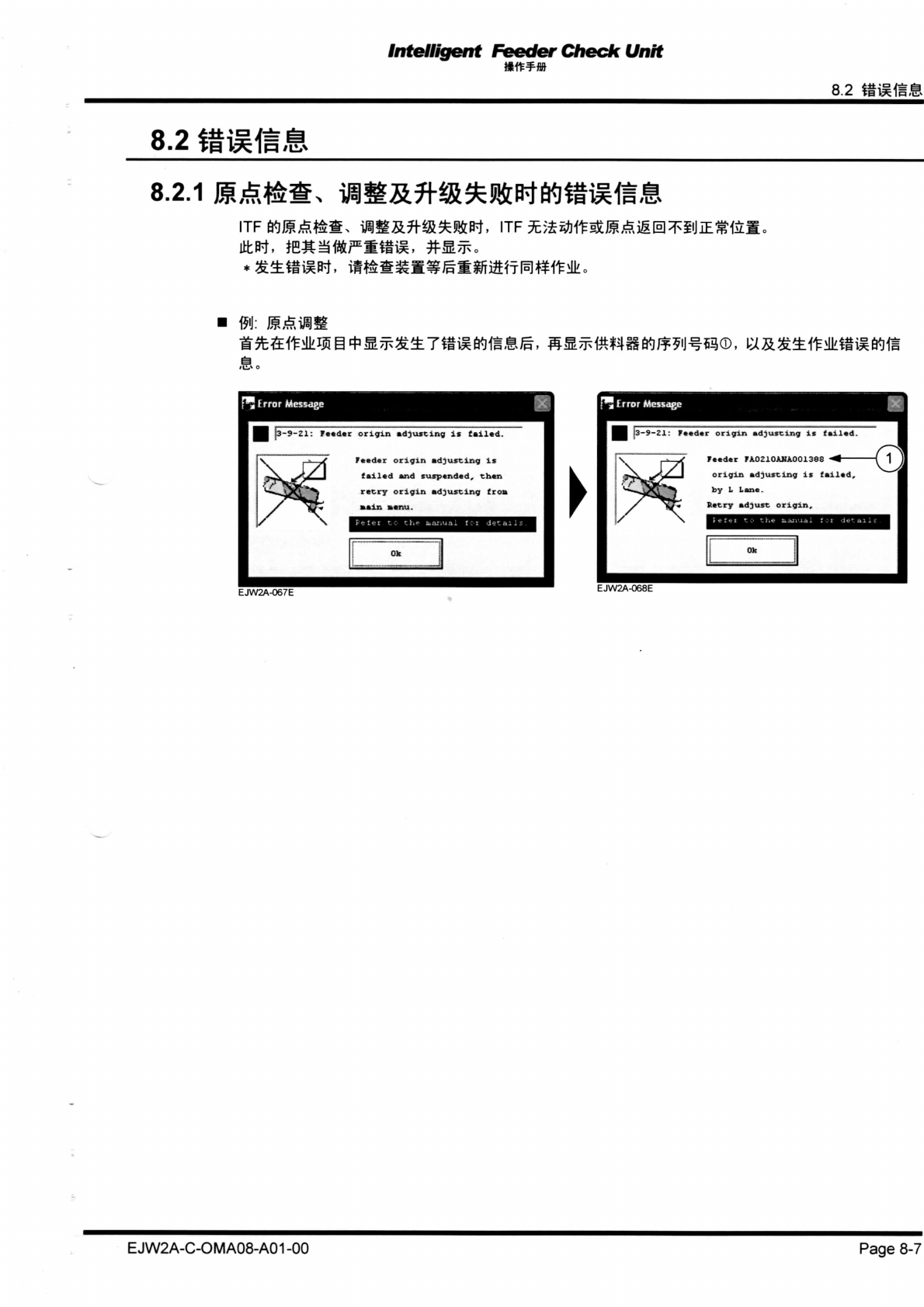 Intelligent Feeder Check Unit 8. 2 m&m& 8. 2 H«fs « 8.2. 1 mfitem. issiafhaijfejiftwwtisfs m li t ft, iB^f&PS^il , ^ FS T T T O P S Erro r Messag e .3-9-21 : Peede r origi n adjustin g i s failed . Feede r or…