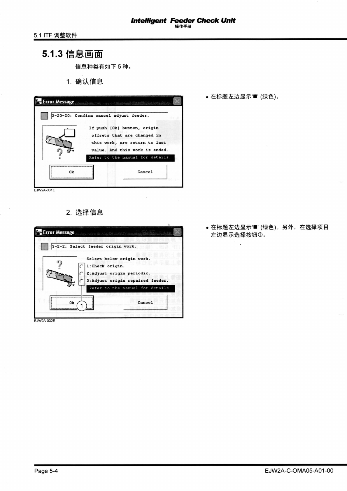 Intelligent Feeder Chew Unit 5. 1 ITFi»&tT - 5.1. 3 iS/ftiU ® 1 . fiftiAliS P 5 Erro r Messag e • 13-20-20 : Confir m cance l adjus t feeder . " j <-J • I f pus h [Ok ] button , origi n offset s tha t ar e ch…