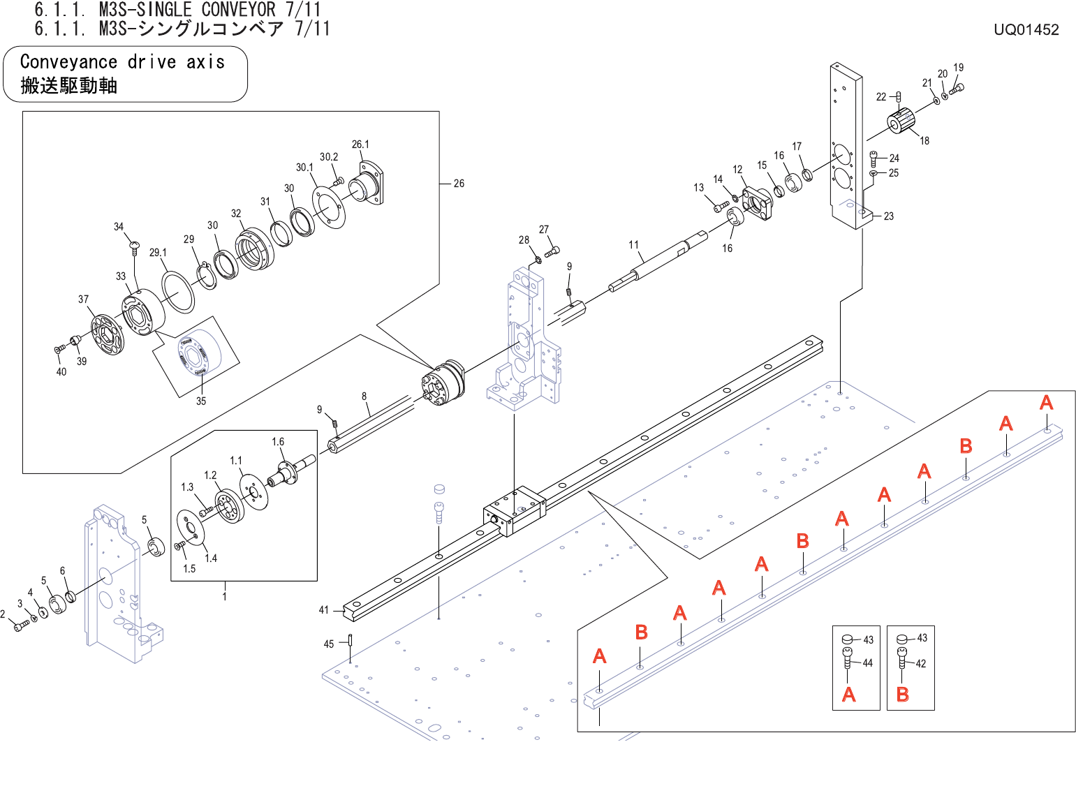 6.1.1. M3S-SINGLE CONVEYOR 7/11 6.1.1. M3S-シングル コンベア 7/11 UQ01452 No. Drg.No. & Code No. QTY Description Rating Materials Remarks 番号 図番 & コード番号 個数 品名 規格 材質 備考 1 AA1EE04 1 PULLEY プー リ OT 1.1 PM61044 1 FLANGE フランジ…