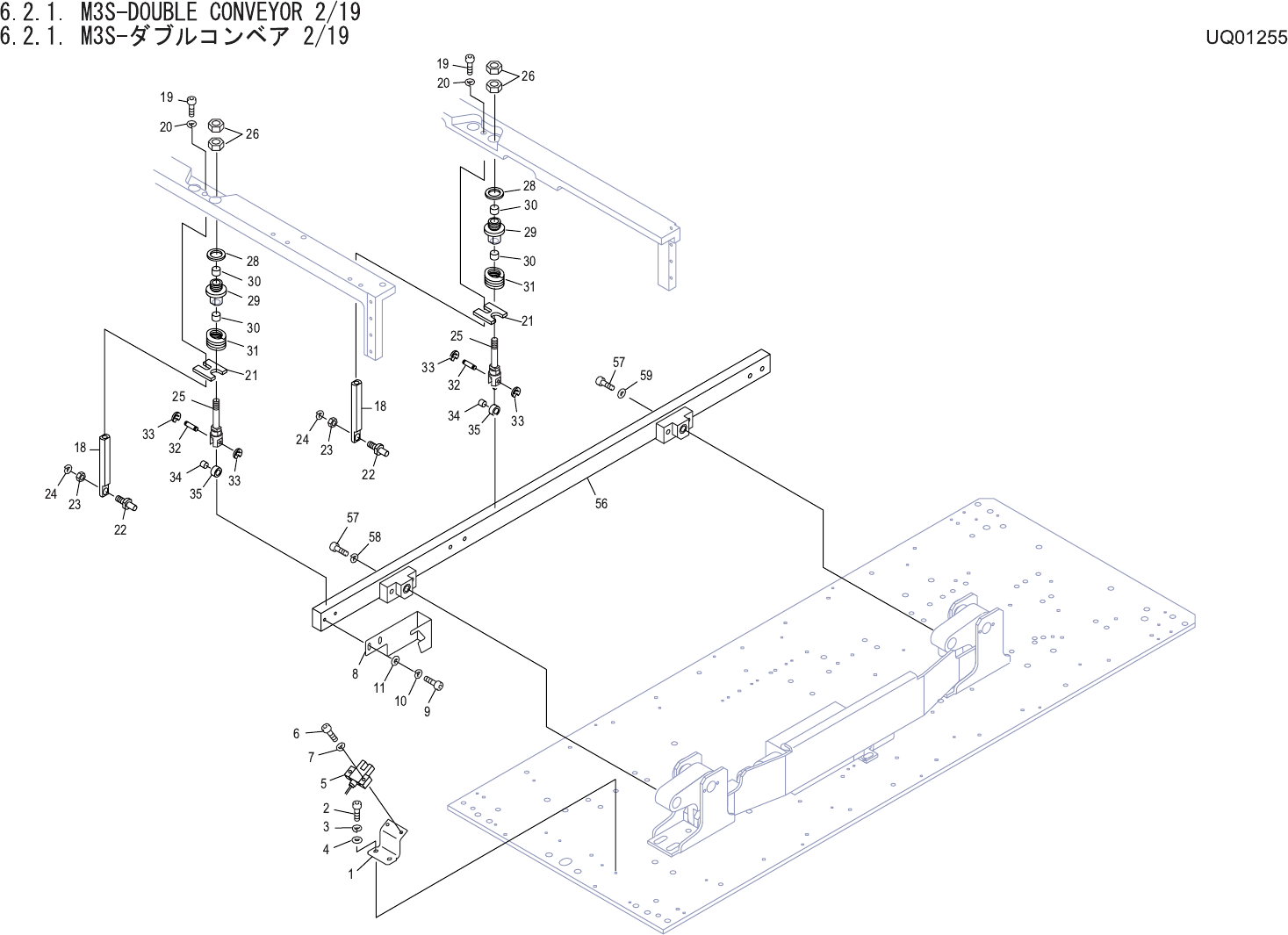 6.2.1. M3S-DOUBLE CONVEYOR 1/19 6.2.1. M3S-ダブルコ ンベア 1/19 UQ01255 No. Drg.No. & Code No. QTY Description Rating Materials Remarks 番号 図番 & コード番号 個数 品名 規格 材質 備考 1 AA24H08 1 PLATE, BACKUP プレート バックアップ OT 2 AA23H09 1 …