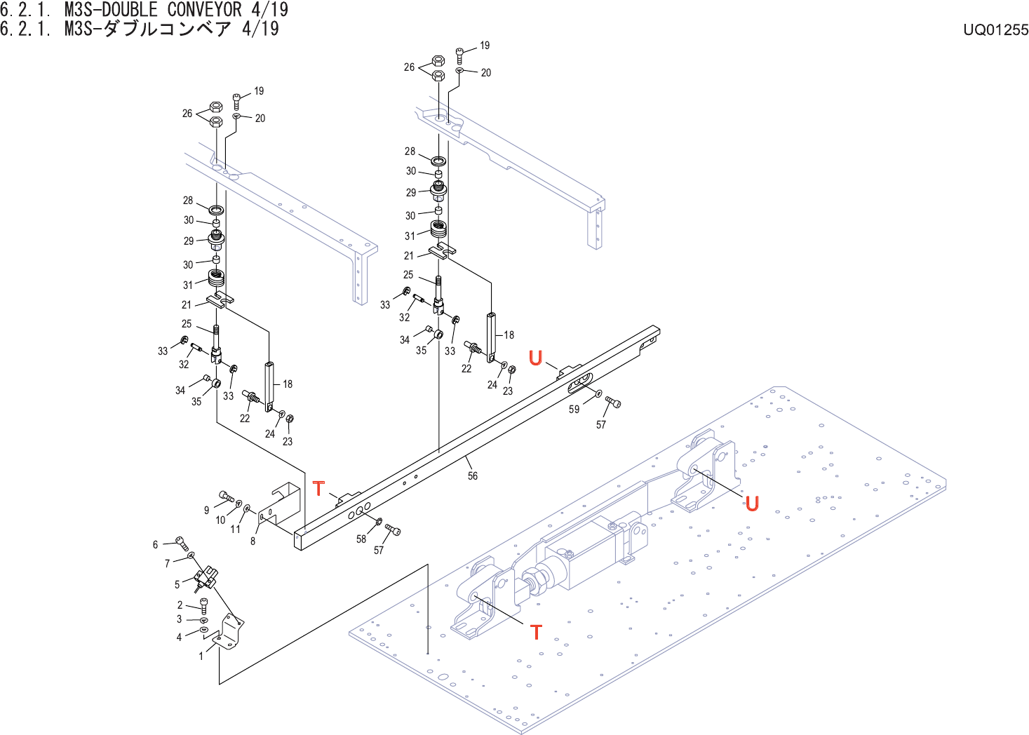 6.2.1. M3S-DOUBLE CONVEYOR 4/19 6.2.1. M3S-ダブルコ ンベア 4/19 UQ01255 No. Drg.No. & Code No. QTY Description Rating Materials Remarks 番号 図番 & コード番号 個数 品名 規格 材質 備考 1 PP00970 1 BKT, SENSOR BKT センサ FE 2 H5275A 2 BOLT, H…