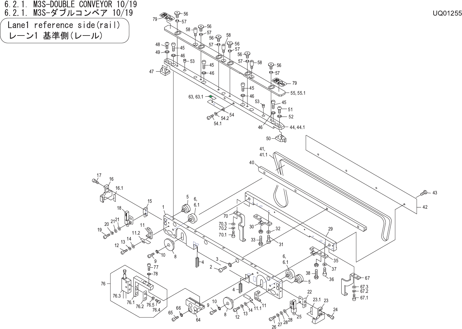 6.2.1. M3S-DOUBLE CONVEYOR 9/19 6.2.1. M3S-ダブルコ ンベア 9/19 UQ01255 No. Drg.No. & Code No. QTY Description Rating Materials Remarks 番号 図番 & コード番号 個数 品名 規格 材質 備考 82 H1137D 2 BAND, TIE バンド 結束 AB-4N(100P) OT 83 K5208A…