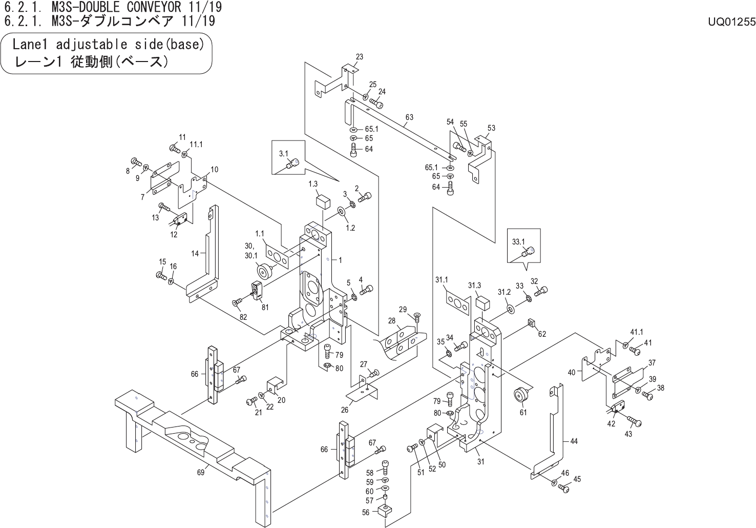 6.2.1. M3S-DOUBLE CONVEYOR 10/19 6.2.1. M3S-ダブルコ ンベア 10/19 UQ01255 No. Drg.No. & Code No. QTY Description Rating Materials Remarks 番号 図番 & コード番号 個数 品名 規格 材質 備考 70.2 W1021A 2 WASHER, LOCK ワッシャ スプリング 3M/M FE 70.3 …