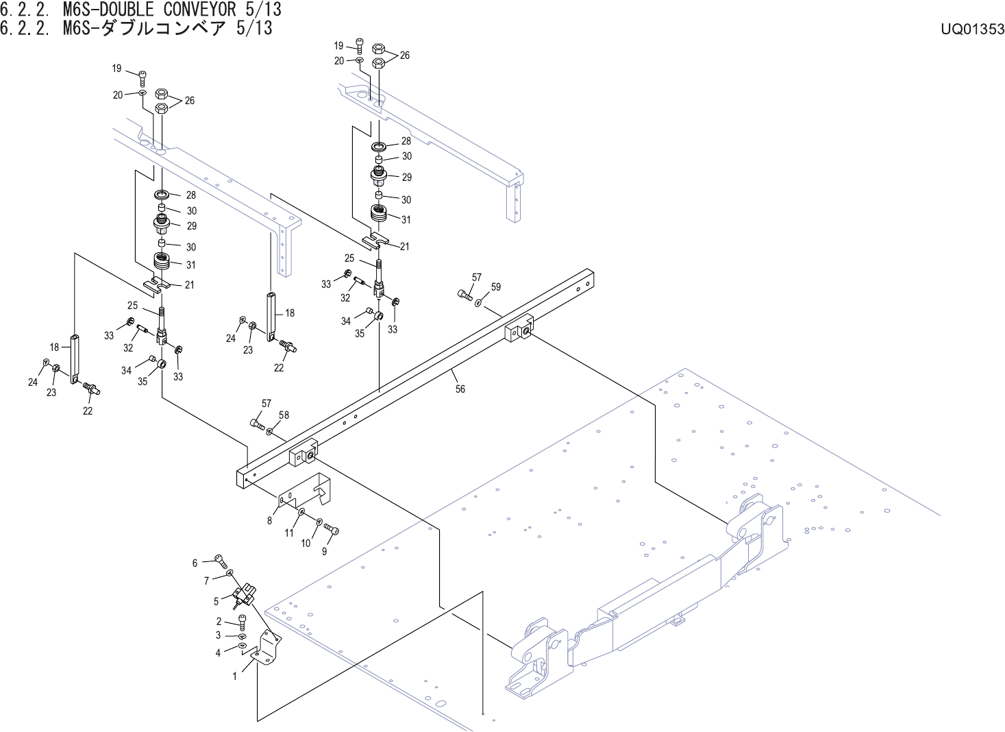 6.2.2. M6S-DOUBLE CONVEYOR 4/13 6.2.2. M6S-ダブルコ ンベア 4/13 UQ01353 No. Drg.No. & Code No. QTY Description Rating Materials Remarks 番号 図番 & コード番号 個数 品名 規格 材質 備考 1 PM01900 2 PIN, LOCATING ピン 位置決め FE 4 PM87133 2 BKT,…