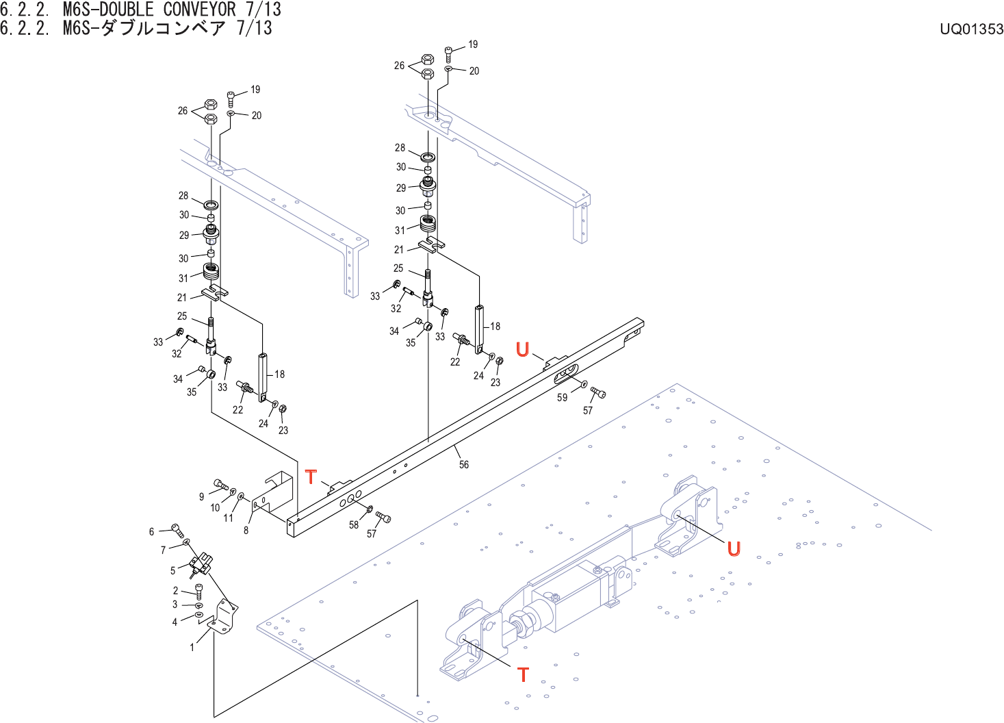 6.2.2. M6S-DOUBLE CONVEYOR 7/13 6.2.2. M6S-ダブルコ ンベア 7/13 UQ01353 No. Drg.No. & Code No. QTY Description Rating Materials Remarks 番号 図番 & コード番号 個数 品名 規格 材質 備考 1 PP00970 1 BKT, SENSOR BKT センサ FE 2 H5275A 2 BOLT, H…