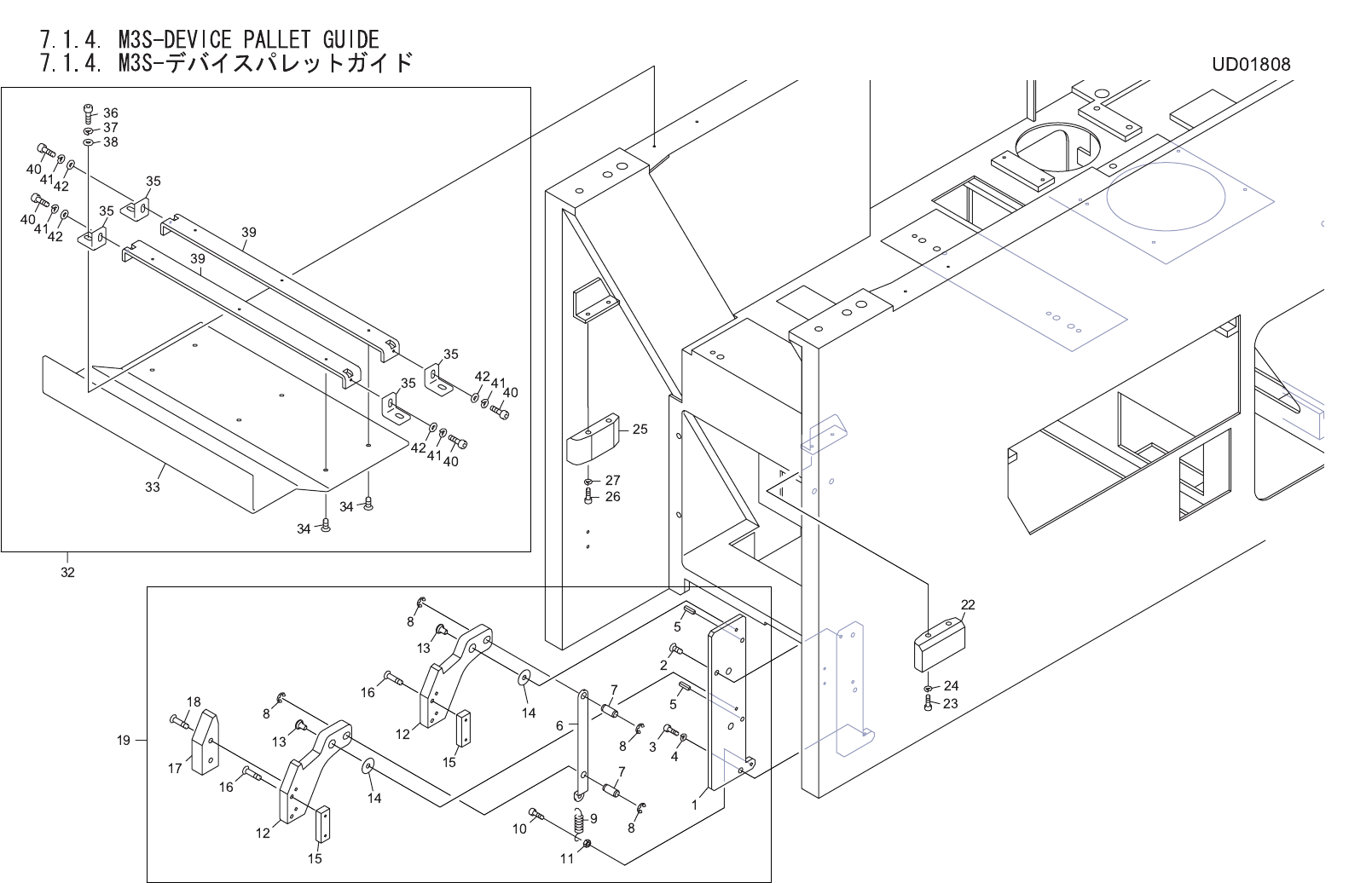 7.1.3. M3S-DEVICE PALLET(PALLET WITH BUCKET) 2/2 7.1.3. M3S-デバイス パレット (バケット 付きパレッ トタイプ ) 2/2 UD01333 No. Drg.No. & Code No. QTY Description Rating Materials Remarks 番号 図番 & コード番号 個数 品名 規格 材質 備考 82 W1043A 1 WASHE…