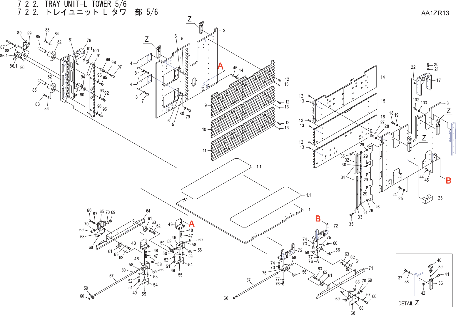 7.2.2. TRAY UNIT-L TOWER 4/6 7.2.2. トレイユニット-L タワー部 4/6 AA1ZR13 No. Drg.No. & Code No. QTY Description Rating Materials Remarks 番号 図番 & コード番号 個数 品名 規格 材質 備考 78 K5357M 2 SCREW, HEX SOCKET COUNTERSUNK 小ネジ 六角穴皿 M03X…
